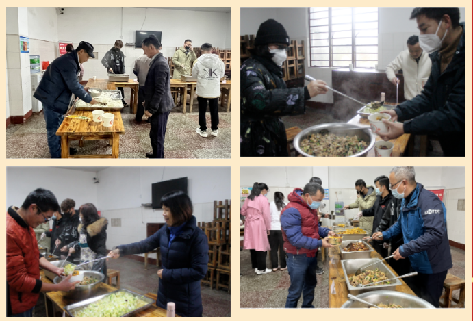 中午时分,大家为前来用餐的同事进行打餐,整个食堂传来阵阵欢笑声,溢满了幸福的味道。