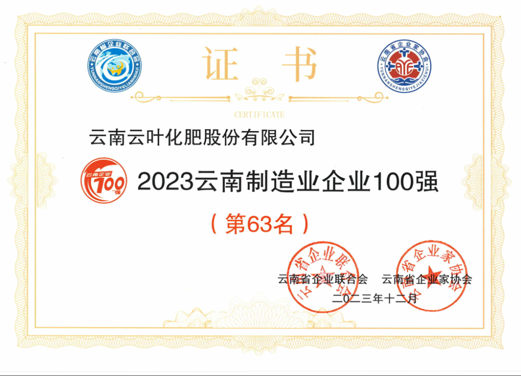云叶被评定为“2023云南制造业企业100强” 2023-12-02 暂无评论 admin 资质荣誉 分享到: 上一篇: 云南省“守合同重信用”企业 下一篇: 云叶被评定为“2023云南民营企业100强”第63名 相关文章 中国中微量元素及肥料产学研创新联盟镁肥专委会 2024全国绿色肥料影响力品牌示范单位——第十五届全国肥料“三新”研讨会牌匾 仓储中心QC小组 “无机一班”为二0二四年云南省化工行业质量信得过班组 “电工组”为二〇二四年云南省化工行业质量信得过班组 云叶被评定为“2023云南高新技术企业100强”第45名 云叶被评定为“2023云南民营企业100强”第63名 云南省“守合同重信用”企业 2022年度工会重点工作目标责任评定-特优单位 云南省非公企业创新能力10强(2022)第8位